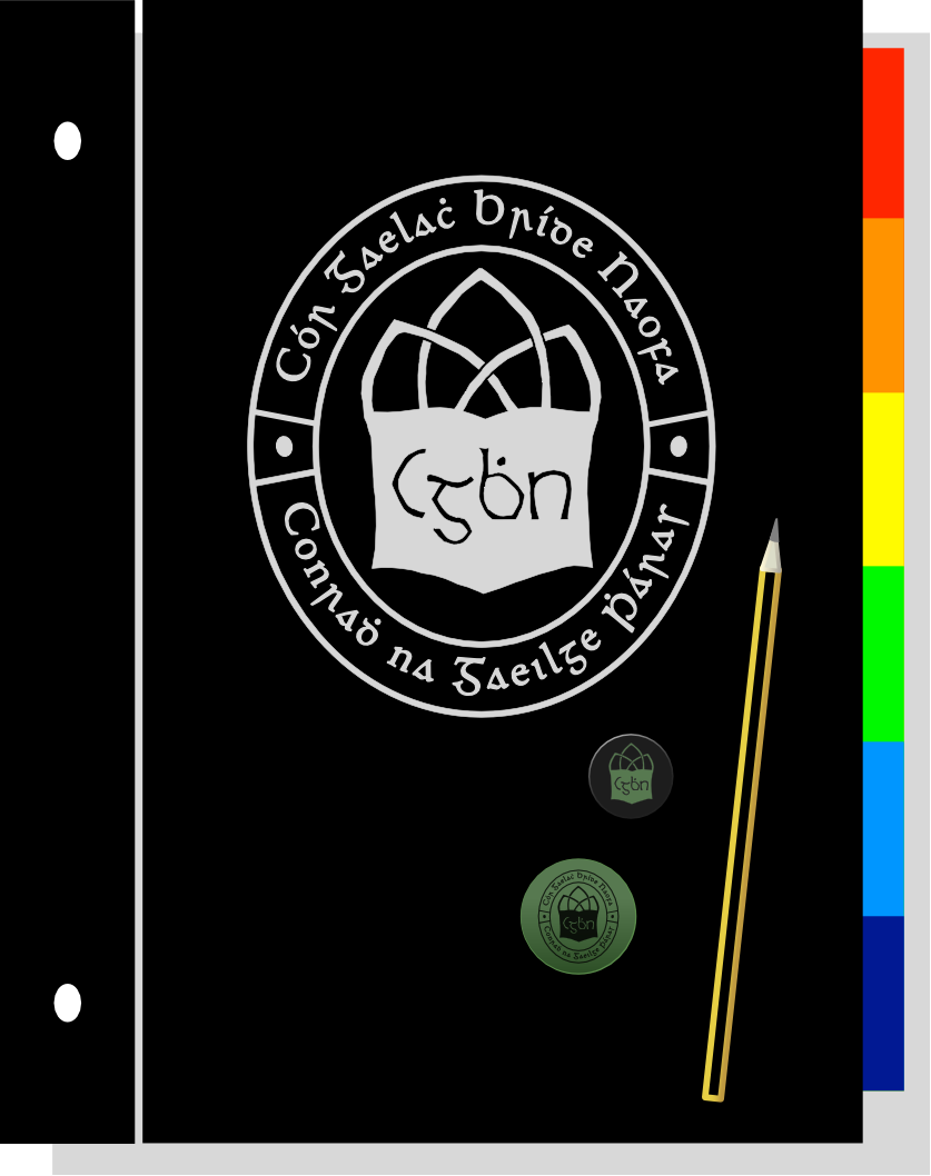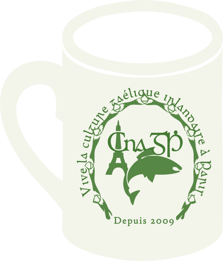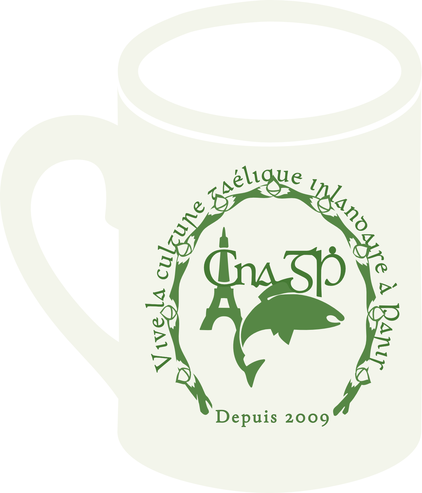 On lit autour du sigle « Vive la culture gaélique irlandaise à Paris » depuis 2009.Le saumon de la sagesse mangeant les neuf noisettes de la connaissance, il remonte aux sources de la mythologie gaélique.
